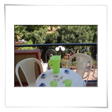 Sur le plat il ya une terrasse ensoleillée idéale pour bronzer et admirer un splendide vue (monts d'un côté et mer de l'autre).